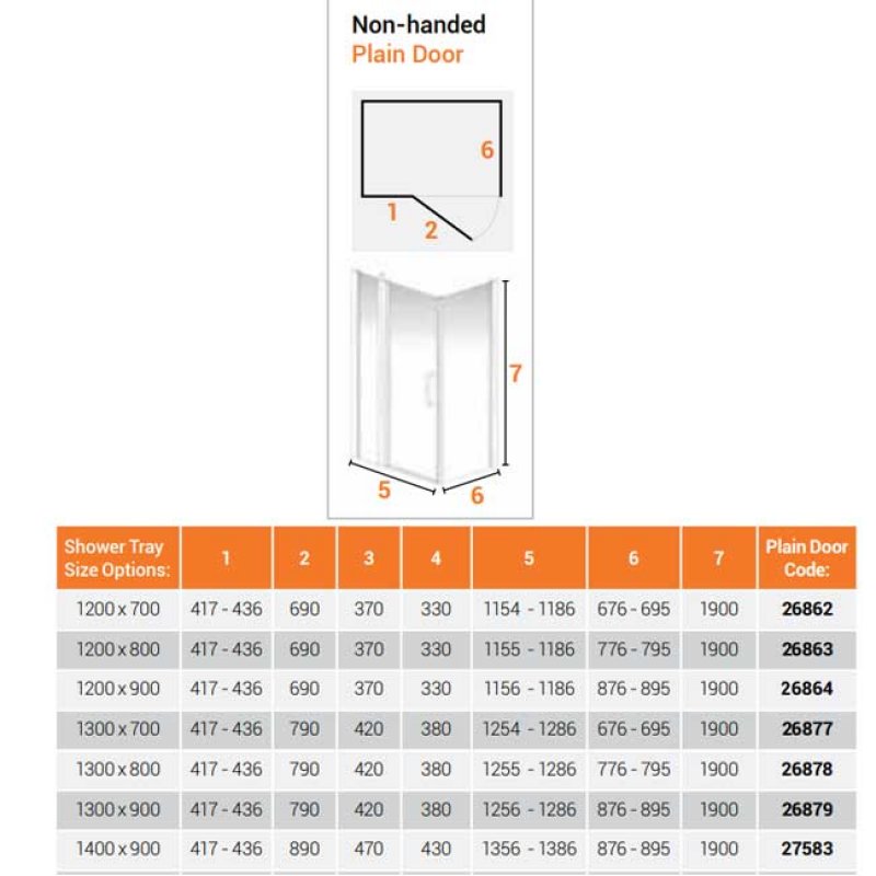 • Supplied with 900mm wide shower door with 400mm wide In-line Panel and 900mm side panel