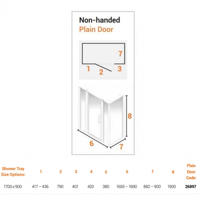 • Supplied with 900mm wide shower door with 2x 400mm wide In-line Panel and 900mm side panel