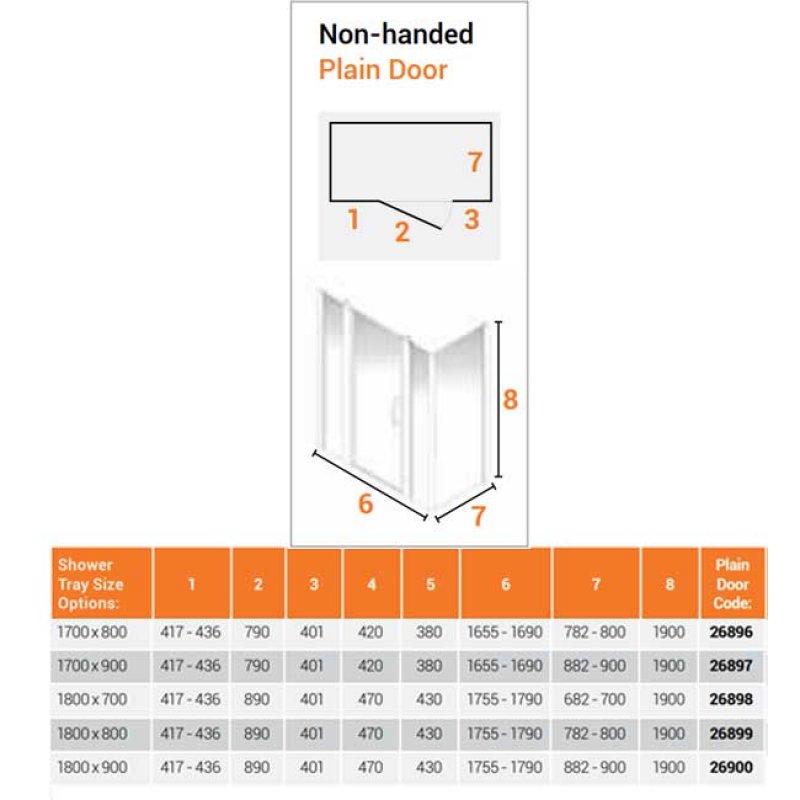 • Supplied with 900mm wide shower door with 2x 400mm wide In-line Panel and 900mm side panel