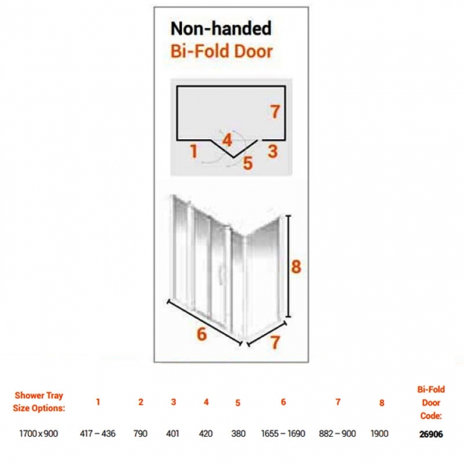 • Supplied with 1x900mm wide bi-fold door,1x900mm wide side panel and 2x400mm wide in-line panel