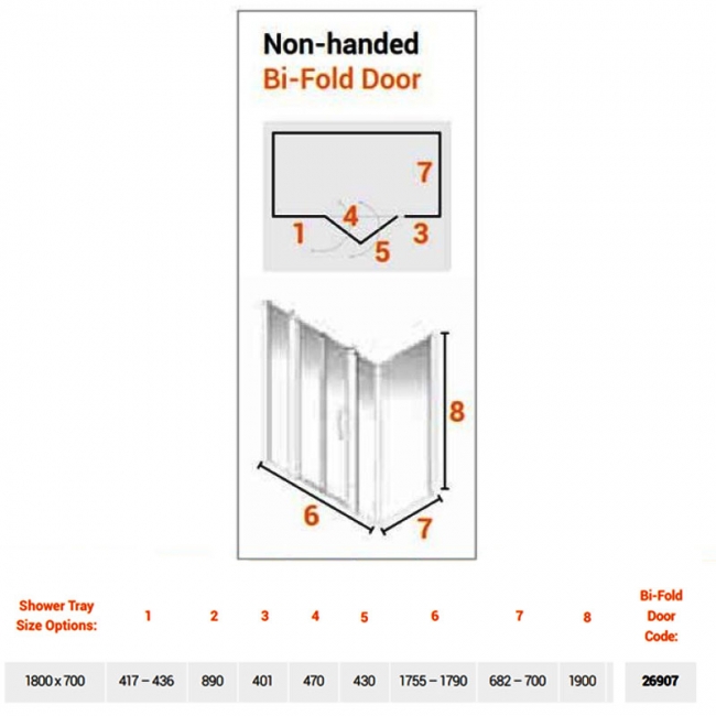 • Supplied with 1x1000mm wide bi-fold door,1x700mm wide side panel and 2x400mm wide in-line panel