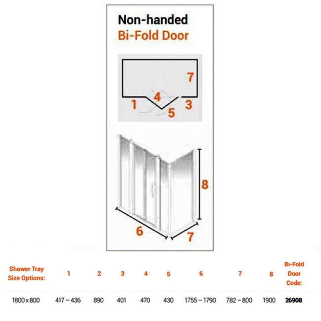 • Supplied with 1x1000mm wide bi-fold door,1x800mm wide side panel and 2x400mm wide in-line panel