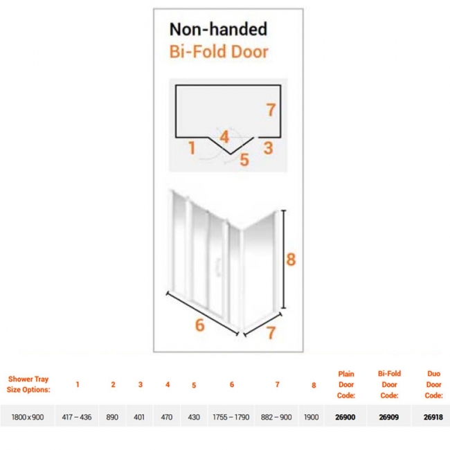 • Supplied with 1x1000mm wide bi-fold door,1x900mm wide side panel and 2x400mm wide in-line panel