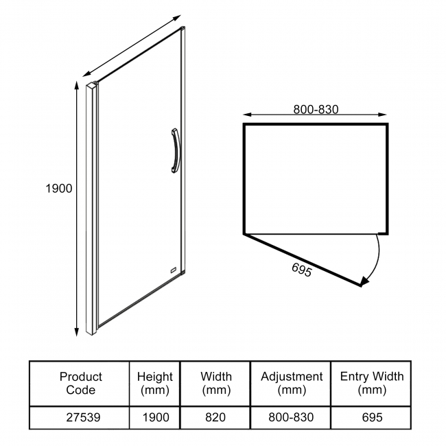 Shower Door Width820mm