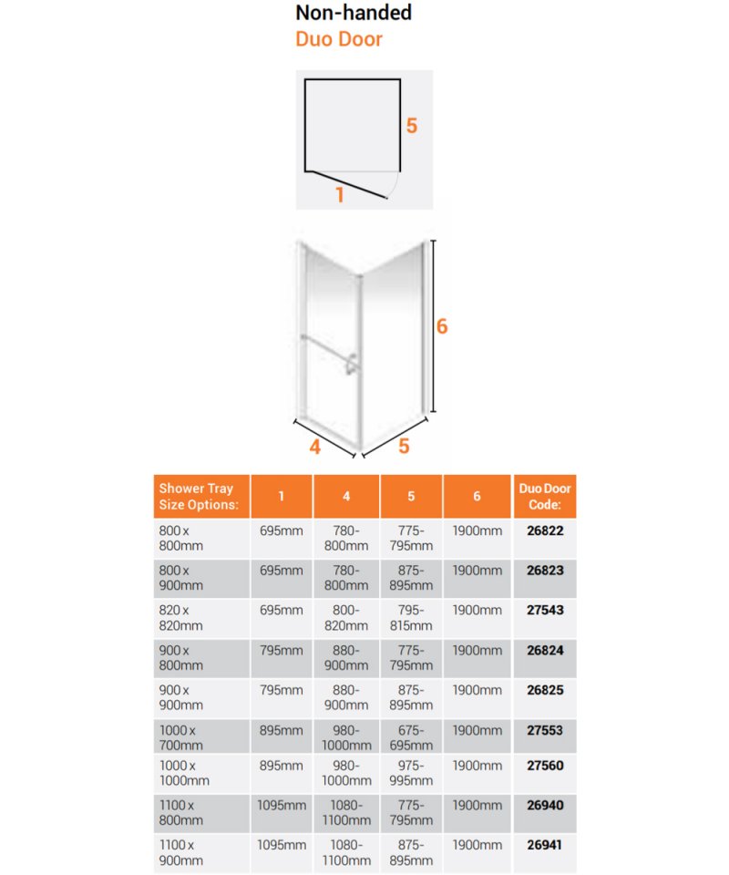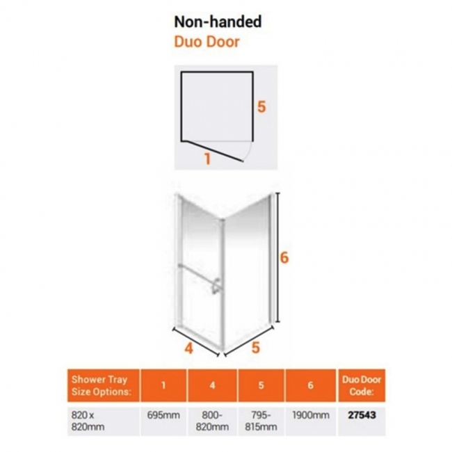 • Supplied with 1x800mm wide shower door,1x800mm side panel