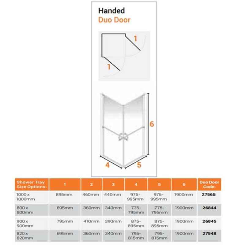 AKW Larenco Duo Hinged Corner Entry Shower Enclosure 820mm x 820mm - 6mm Glass
