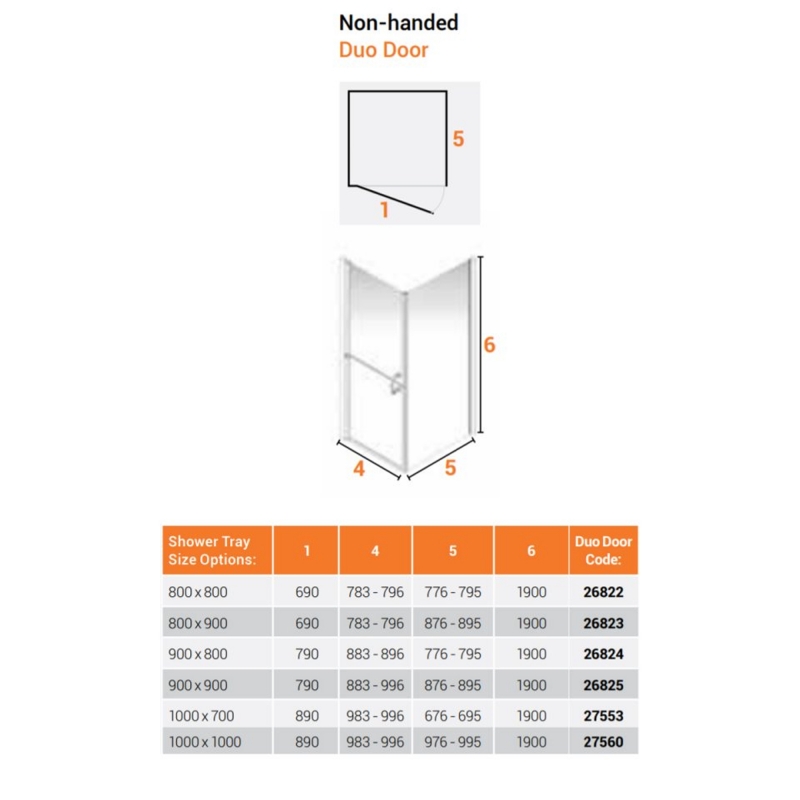 • Supplied with 1x1000mm wide shower door,1x700mm side panel