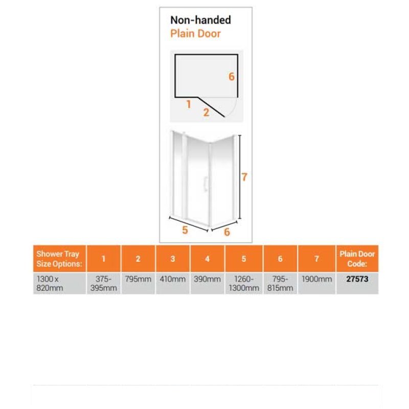 AKW Larenco Inline Hinged Door Shower Enclosure 1300mm x 820mm - 6mm Glass