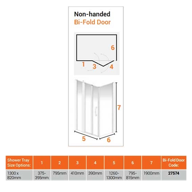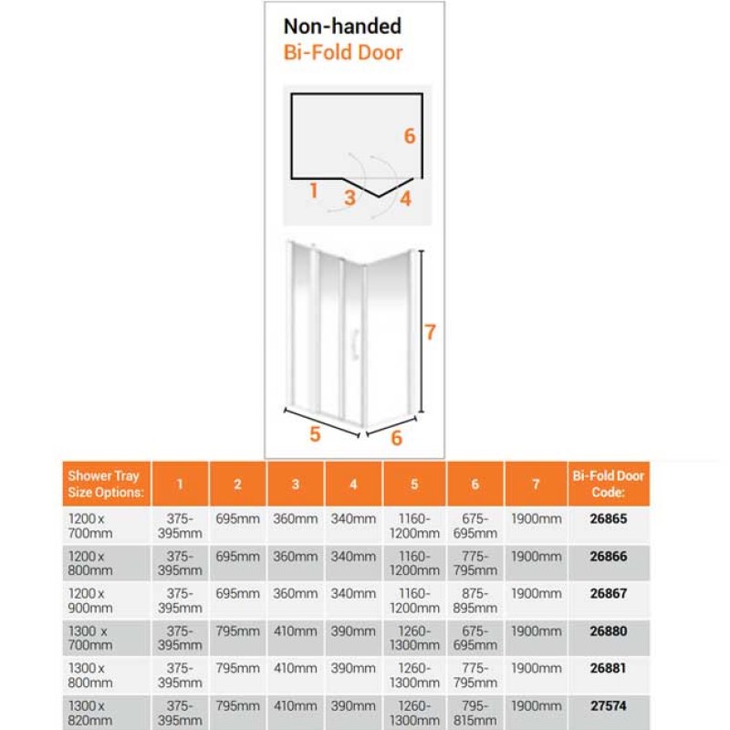 • Supplied with 1x900mm wide bi-fold door,1x800mm wide side panel and 1x400mm wide in-line panel