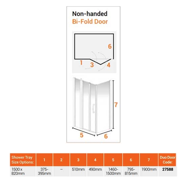 • Supplied with 1x1100mm wide bi-fold door,1x800mm wide side panel and 1x400mm wide in-line panel