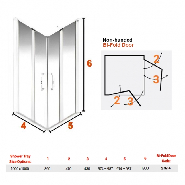 AKW Larenco Hinged Bi-Fold Corner Entry Shower Enclosure 1000mm x 1000mm - 6mm Glass