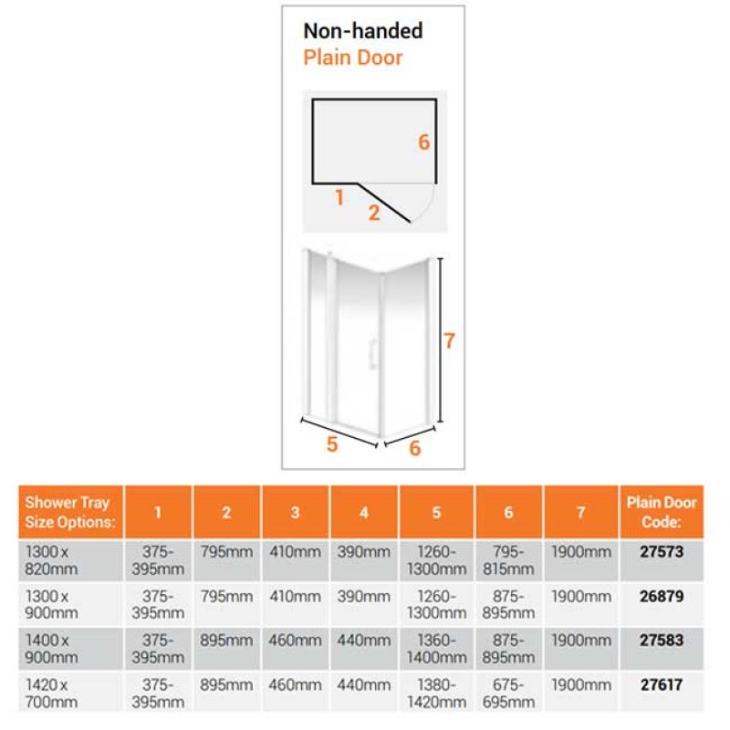 • Supplied with full height wide wall compensator 1000mm wide shower door with 400mm wide In-line Panel and 700mm side panel