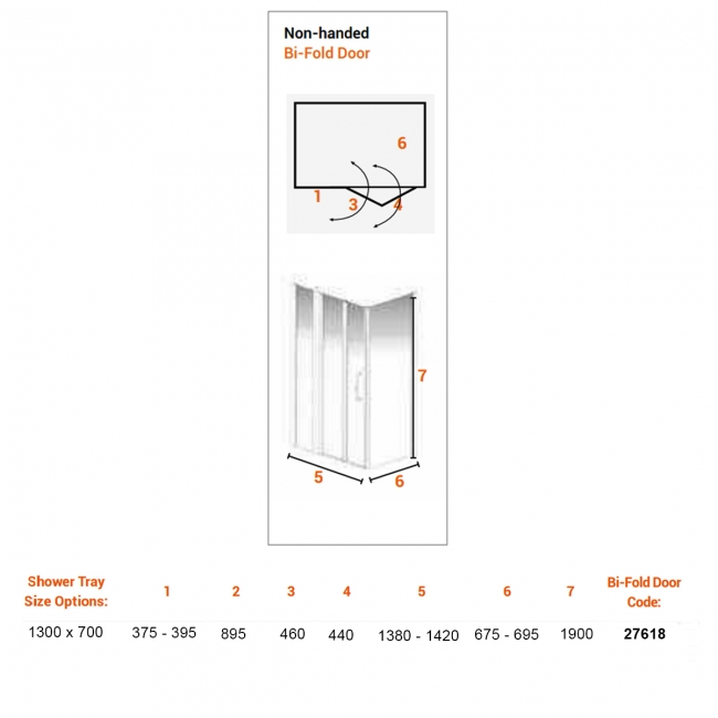 • Supplied with 1x1000mm wide bi-fold door,1x700mm wide side panel and 1x400mm wide in-line panel