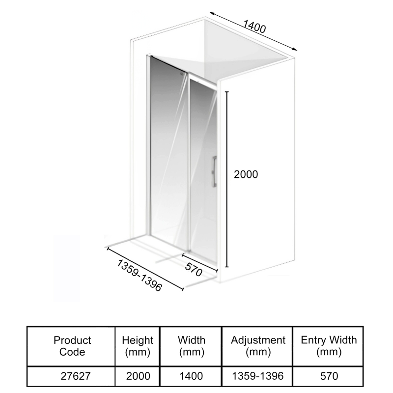 Signature Contract Sliding Shower Door 1400mm Wide - 6mm Glass | Product Image