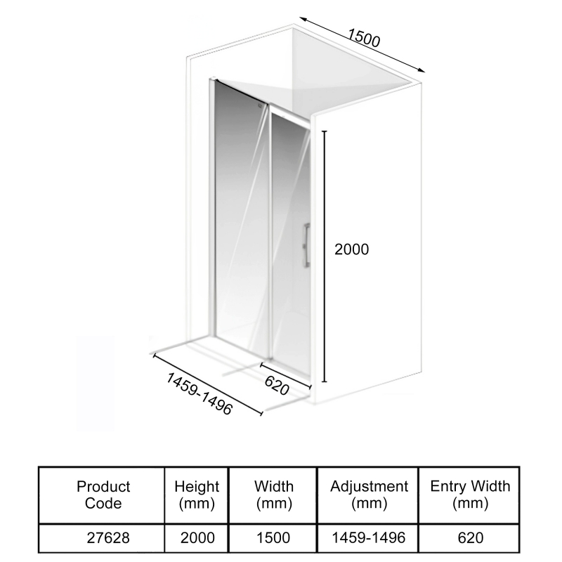 Signature Contract Sliding Shower Door 1500mm Wide - 6mm Glass