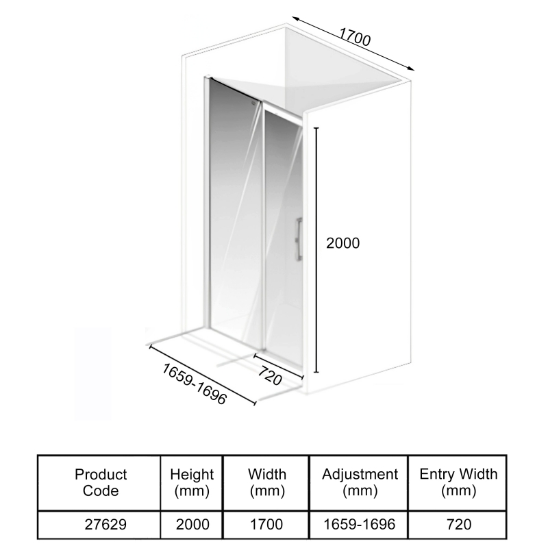 Signature Contract Sliding Shower Door 1700mm Wide - 6mm Glass