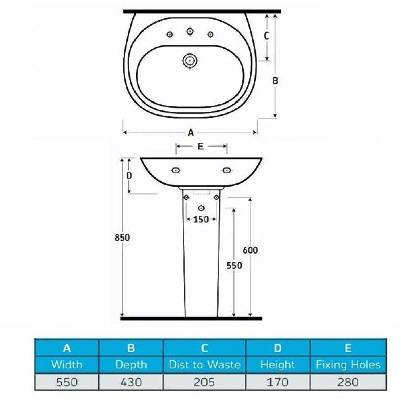 Basin Width 550mm