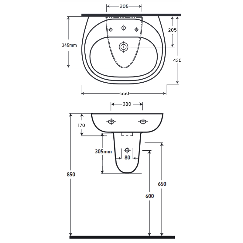 AKW Livenza Basin and Large Semi Pedestal 550mm Wide - 1 Tap Hole | Product Image AKW Livenza Basin and Large Semi Pedestal 550mm Wide - 1 Tap Hole | Product Image AKW Livenza Basin and Large Semi Pedestal 550mm Wide - 1 Tap Hole