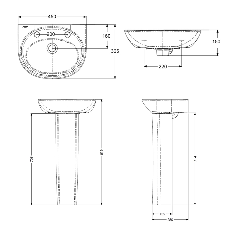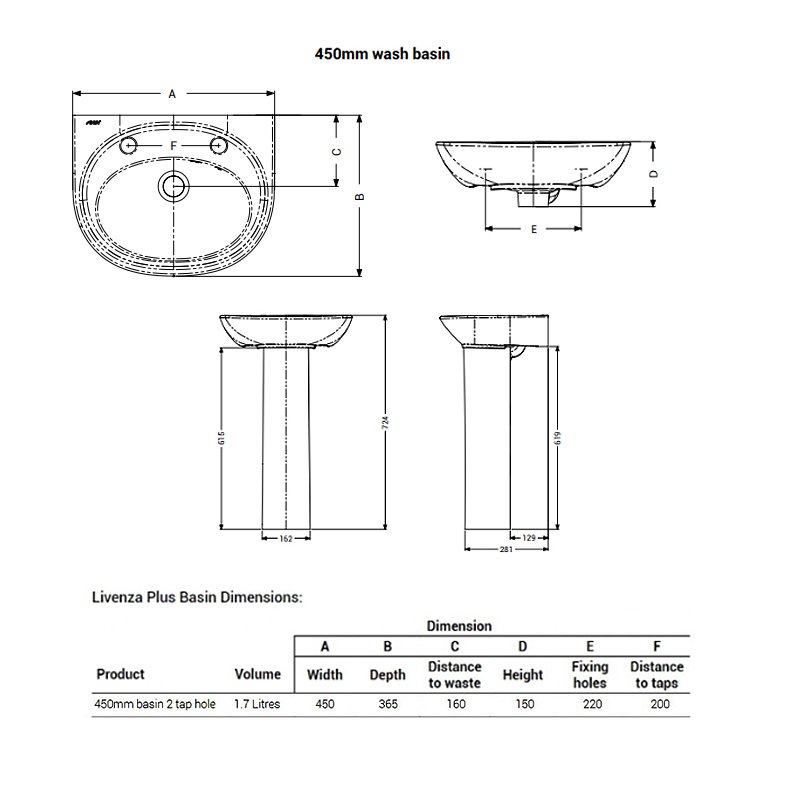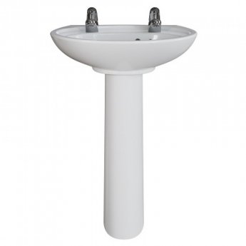 AKW Livenza Plus Basin with Full Pedestal 450mm Wide - 2 Tap Hole