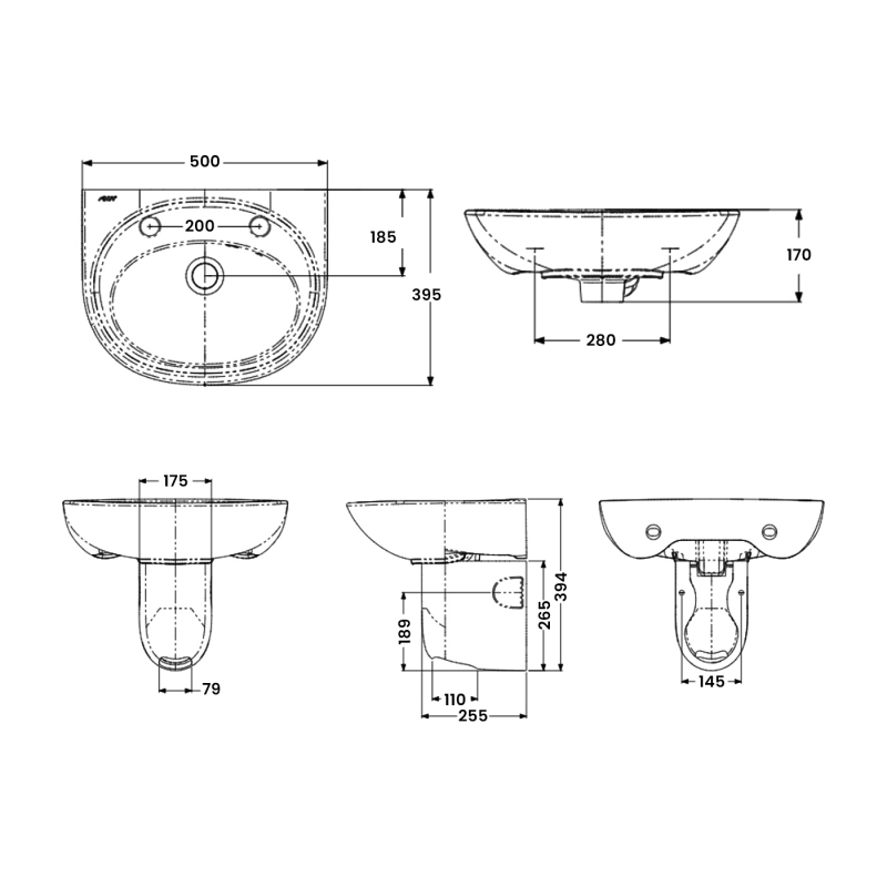 AKW Livenza Plus Basin and Semi Pedestal 500mm Wide - 2 Tap Hole | Product Image AKW Livenza Plus Basin and Semi Pedestal 500mm Wide - 2 Tap Hole | Product Image AKW Livenza Plus Basin and Semi Pedestal 500mm Wide - 2 Tap Hole