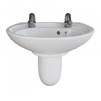 AKW Livenza Plus Basin and Semi Pedestal 500mm Wide - 2 Tap Hole