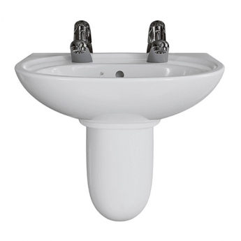 AKW Livenza Plus Basin and Semi Pedestal 550mm Wide - 2 Tap Hole