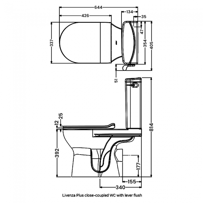 AKW Livenza Plus Close Coupled Toilet with Lever Flush Cistern - Carbamide Soft Close Seat