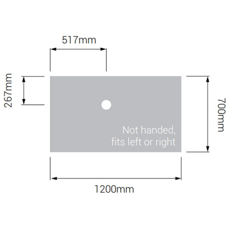 • The images showing the tray installed in a room depict a 1420mm x 700mm model