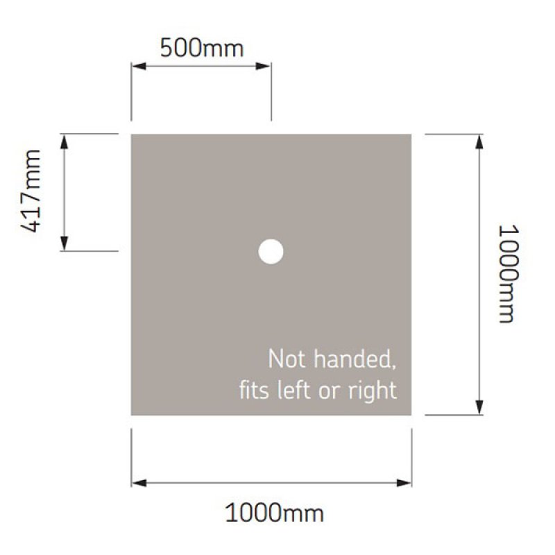 - Low profile, anti-slip shower tray measuring 1000mm x 1000mm