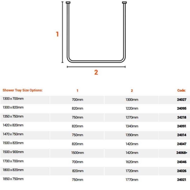 Shower Rail Size1500mm x 900mm x 1500mm