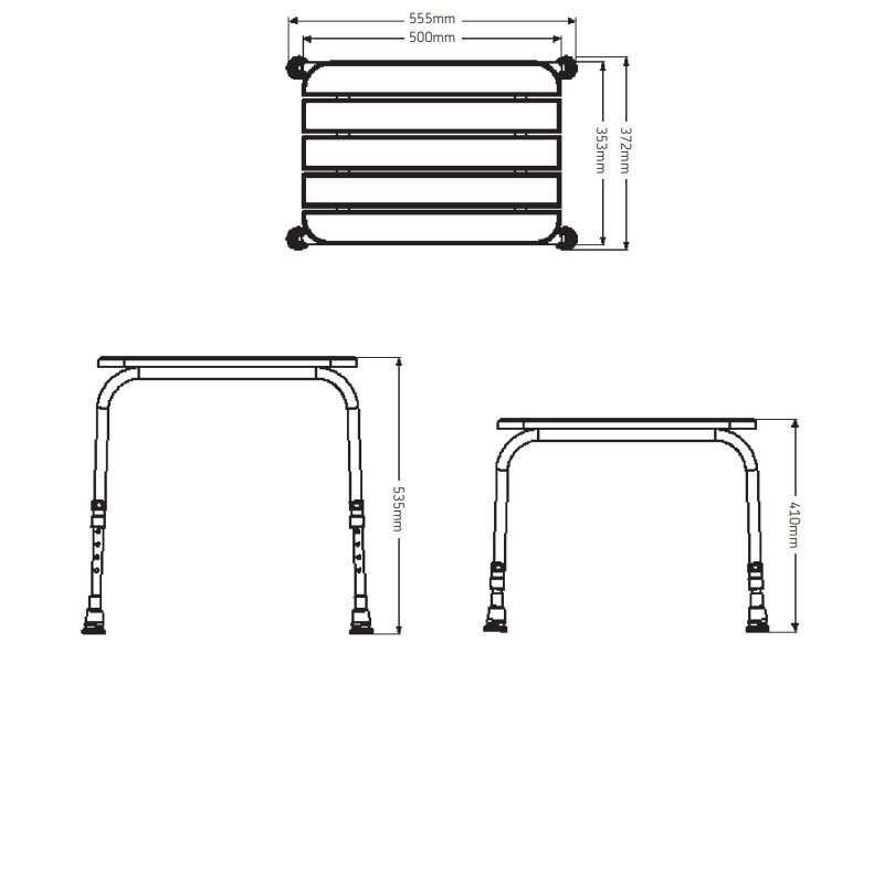 AKW Wooden Freestanding Shower Stool 555mm x 372mm | Product Image