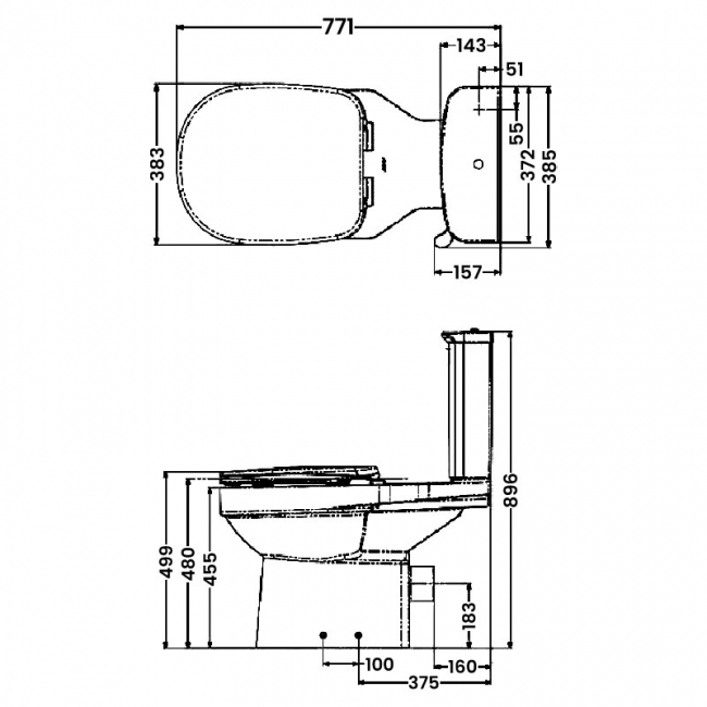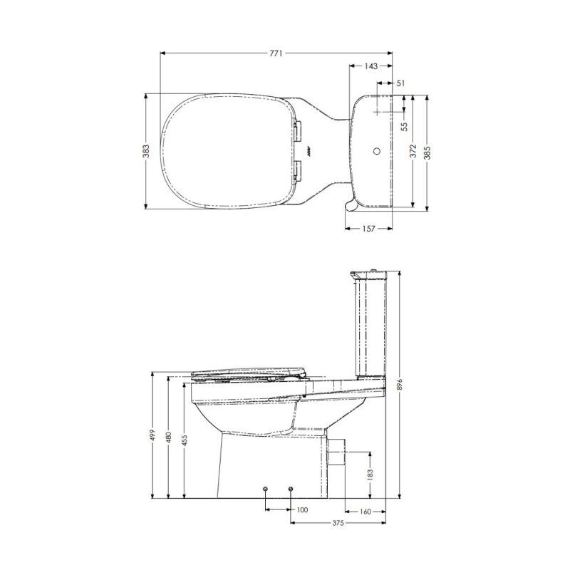 • 480mm raised-height toilet pan (height with seat affixed) complies with Doc M guidelines and makes it easier for less mobile users to lower/rise from the toilet