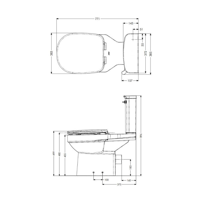 • 480mm raised-height toilet pan (height with seat affixed) complies with Doc M guidelines and makes it easier for less mobile users to lower/rise from the toilet