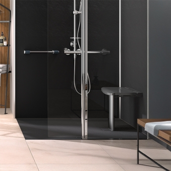 Featuring a textured slate effect surface and highly-contrasting black finish, the Onyx Exclusif shower tray iterates upon a traditional assisted living solution and adds design elements that give it a premium aesthetic. The Onyx Exclusif tray includes a discreet waste cover in the same black shade as the surface, helping to give the tray an almost seamless appearance. Manufactured from SMC.