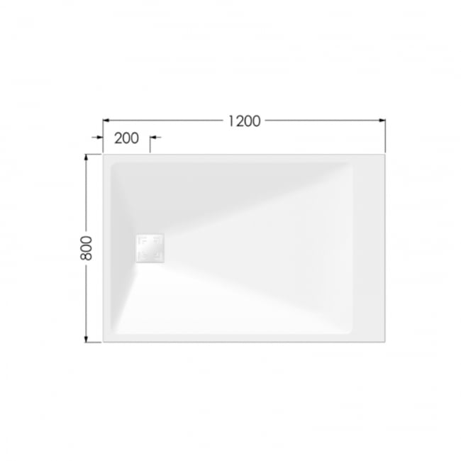 - Rectangular shallow depth shower tray measuring 1200mm x 800mm