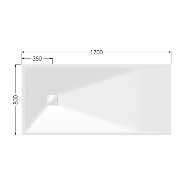 - Rectangular shallow depth shower tray measuring 1700mm x 800mm