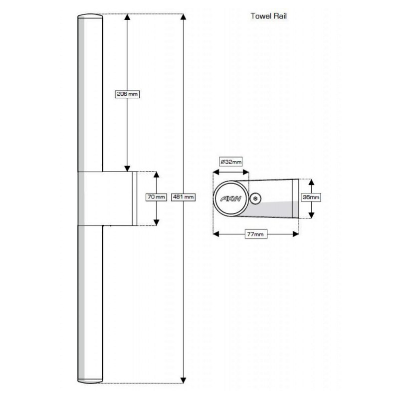 AKW Onyx Towel Bar 480mm - Black/Chrome