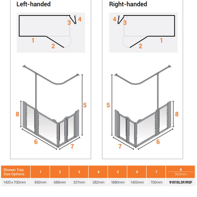 AKW Option B 900 Shower Screen 1420mm x 700mm - Left Handed - Silverdale Frosted