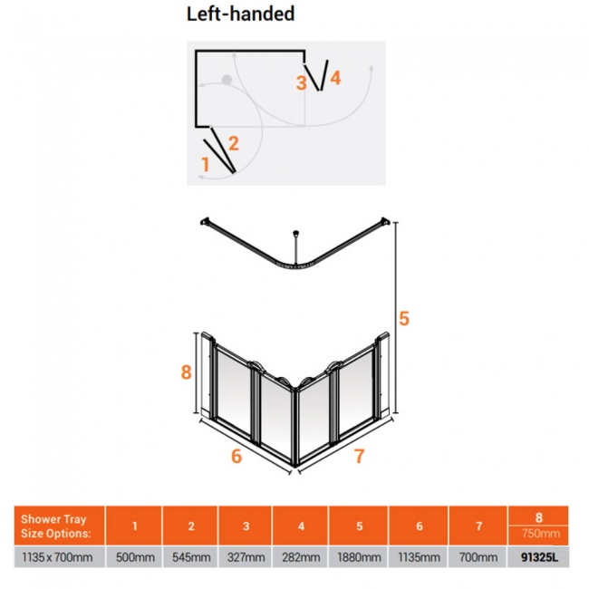 • 180 degree hinges on single doors and 360 degree hinges on bi-folding doors - Enables the doors to open both inwards and outwards providing easy access for the user in smaller bathrooms