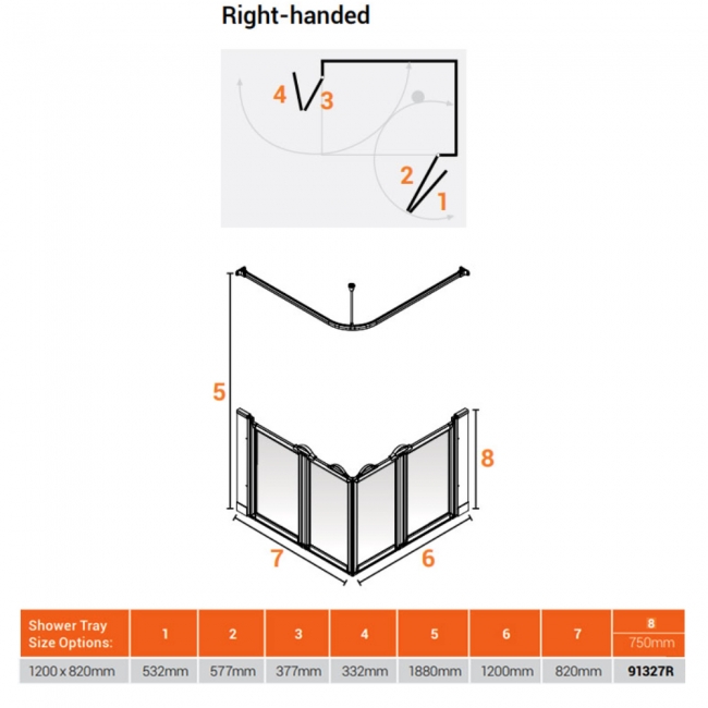 AKW Option EW 750 Wet Floor Screen 820mm x 1200mm - Right Handed