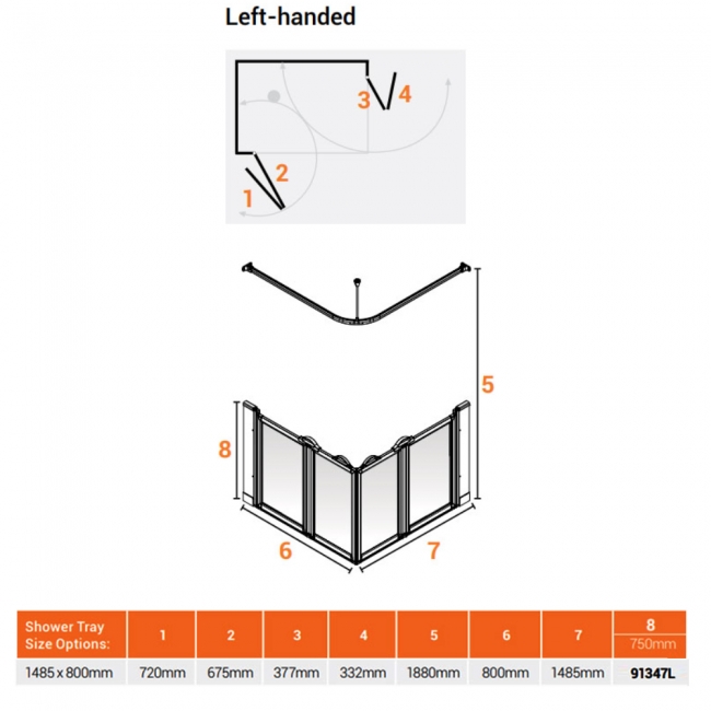 • 180 degree hinges on single doors and 360 degree hinges on bi-folding doors - Enables the doors to open both inwards and outwards providing easy access for the user in smaller bathrooms