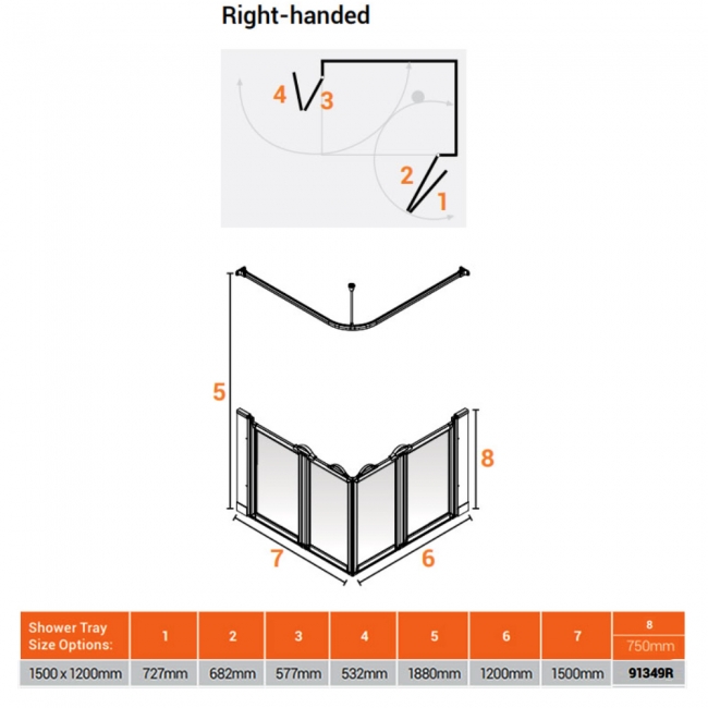 AKW Option EW 750 Wet Floor Screen 1500mm x 1200mm - Right Handed