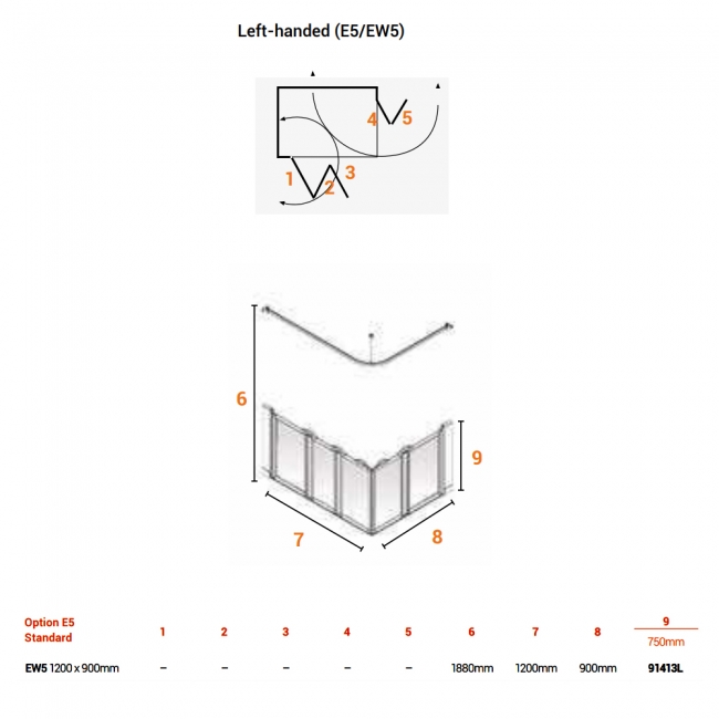 AKW Option EW5 750 Shower Screen 1200mm x 900mm - Left Handed