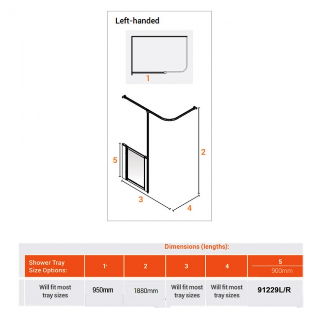 AKW Option H 900 Shower Screen 950mm Wide - Left Handed AKW Option H 900 Shower Screen 950mm Wide - Left Handed