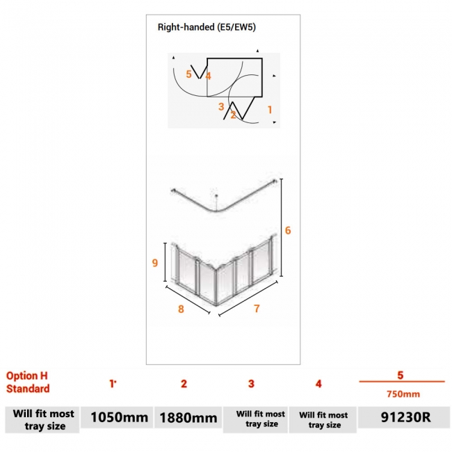 AKW Option H 750 Shower Screen 1050mm Wide - Right Handed