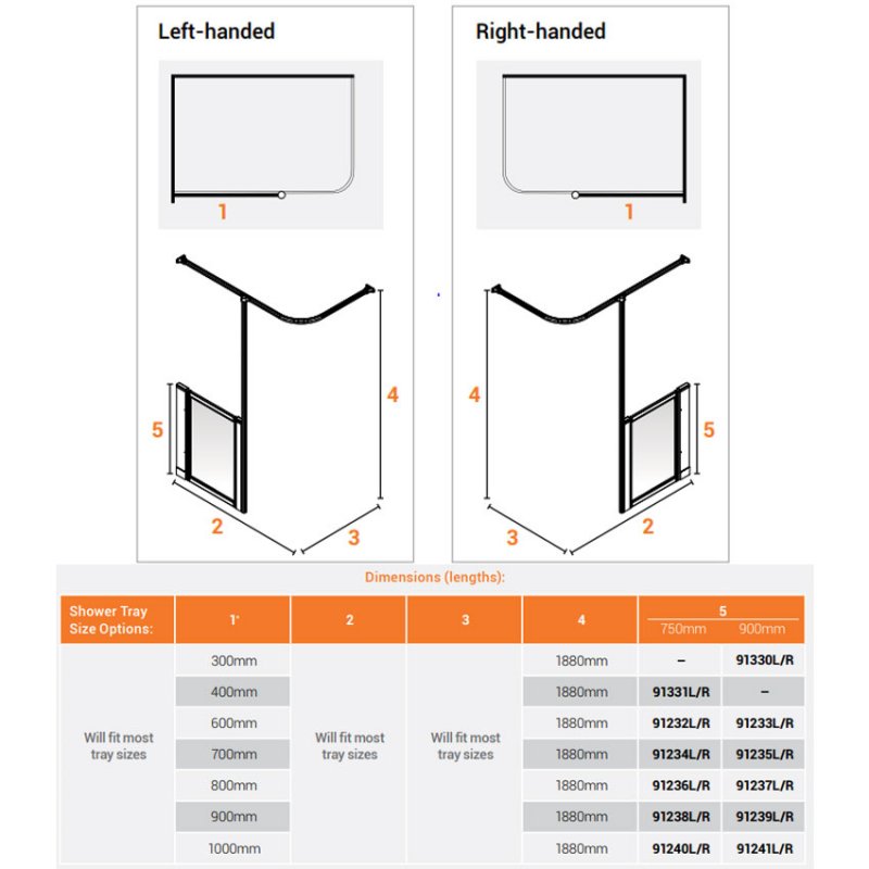 AKW Option HW 750 Wet Floor Screen 600mm Wide - Right Handed