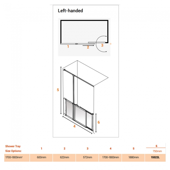 • 180 degree hinges on single doors and 360 degree hinges on bi-folding doors - Enables the doors to open both inwards and outwards providing easy access for the user in smaller bathrooms