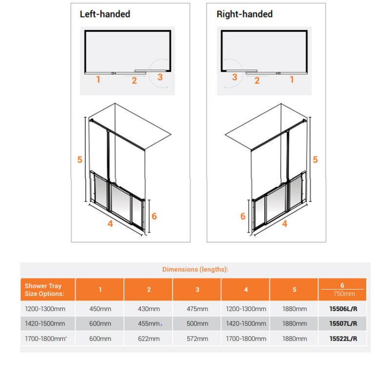 • 180 degree hinges on single doors and 360 degree hinges on bi-folding doors - Enables the doors to open both inwards and outwards providing easy access for the user in smaller bathrooms