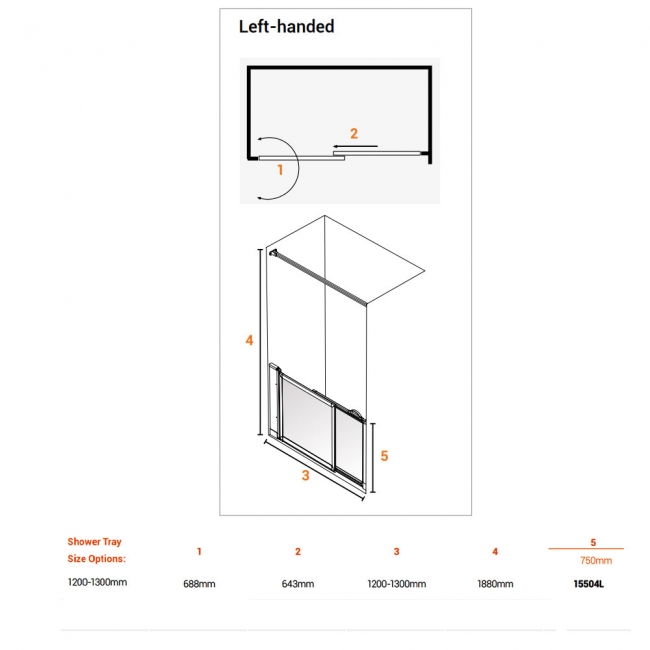 AKW Option SM Sliding Shower Screen 1200-1300mm Wide - Left Handed | Product Image AKW Option SM Sliding Shower Screen 1200-1300mm Wide - Left Handed