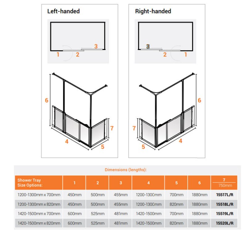 • 180 degree hinges on single doors and 360 degree hinges on bi-folding doors - Enables the doors to open both inwards and outwards providing easy access for the user in smaller bathrooms